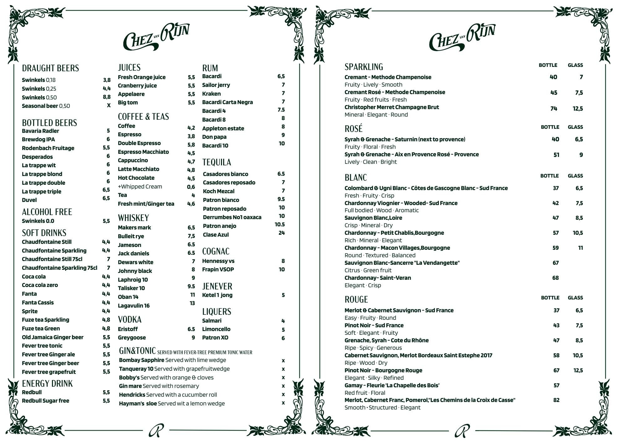 Drinks and wines
